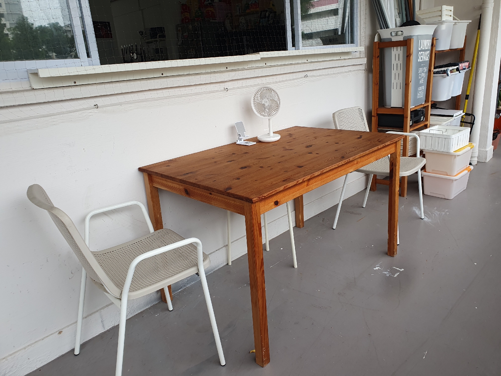 I've also tidied the outside of the house. Moved our (significant) pet supplies outside (we do not have a bomb shelter/storeroom for these things), and then set up an outdoor table and chairs (where I am sitting now, writing this while drinking cheap wine):